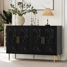 Vintage Hollow Carving Buffet Cabinet With 4 Doors Sideboards With Storage Black