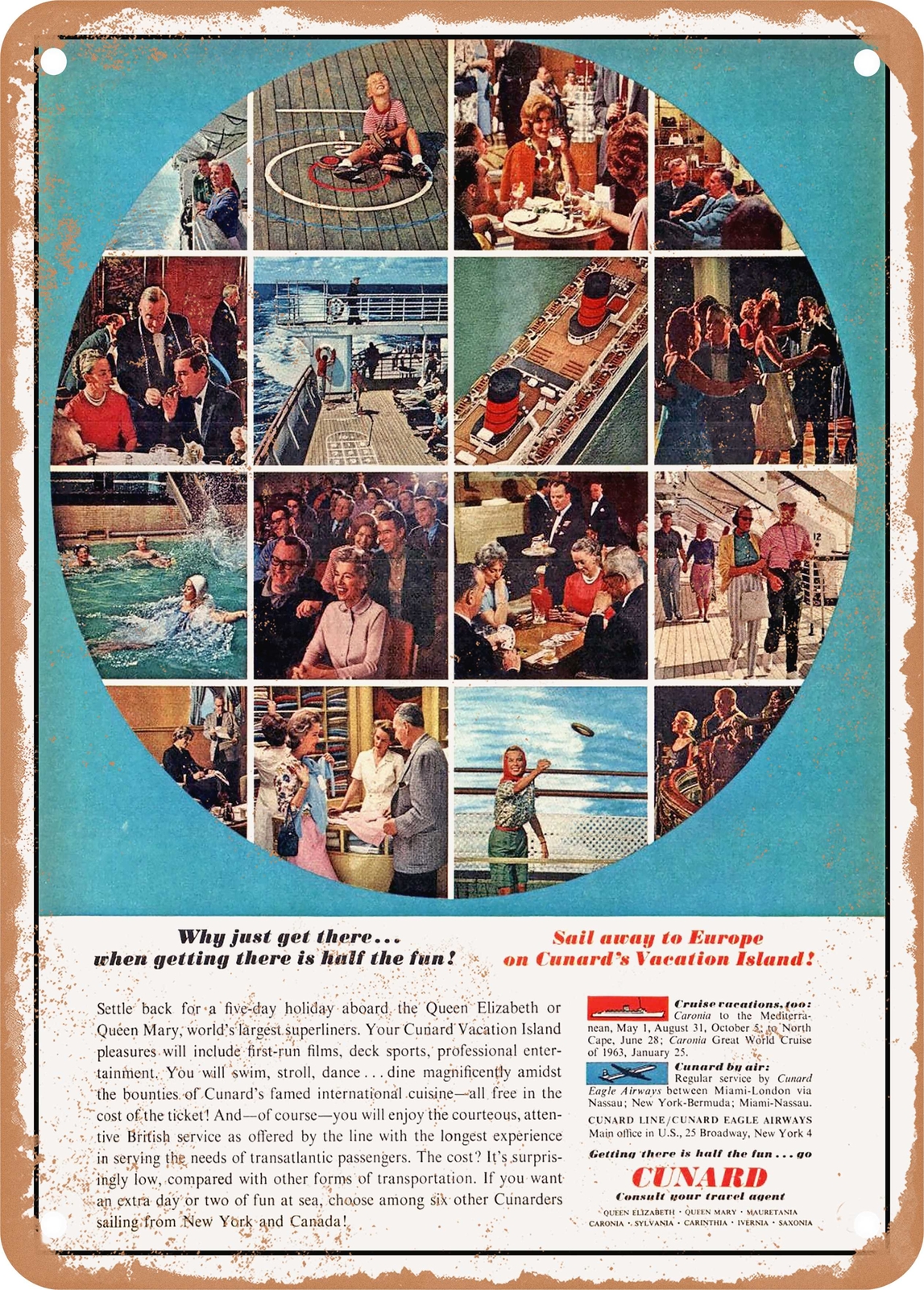 METAL SIGN - 1962 Sail Away to Europe on Cunard's Vacation Island | ✔ Check At Store | $29.96 |