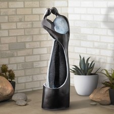 An LED cluster brings energy-efficient illumination to this waterfall fountain. This design can be used indoors or outside in a garden, and includes a water pump for fast setup. Can be used indoors or outside.