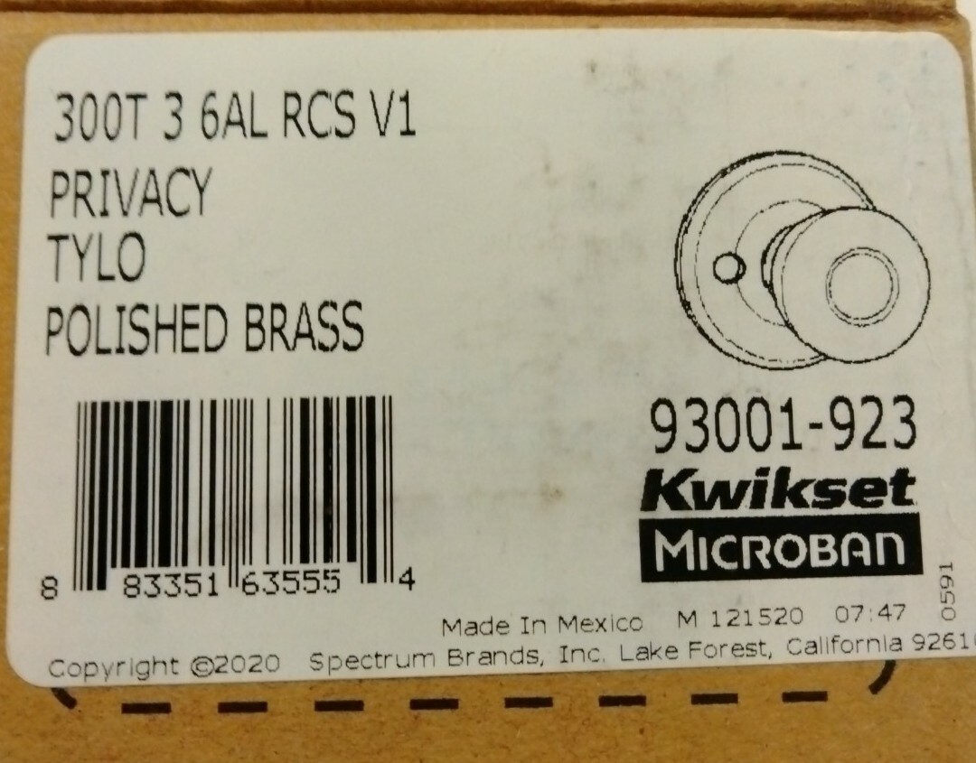 Kwikset Tylo Bed & Bath Door Knob 300T 3 6AL RCS V1 NEW 93001-923