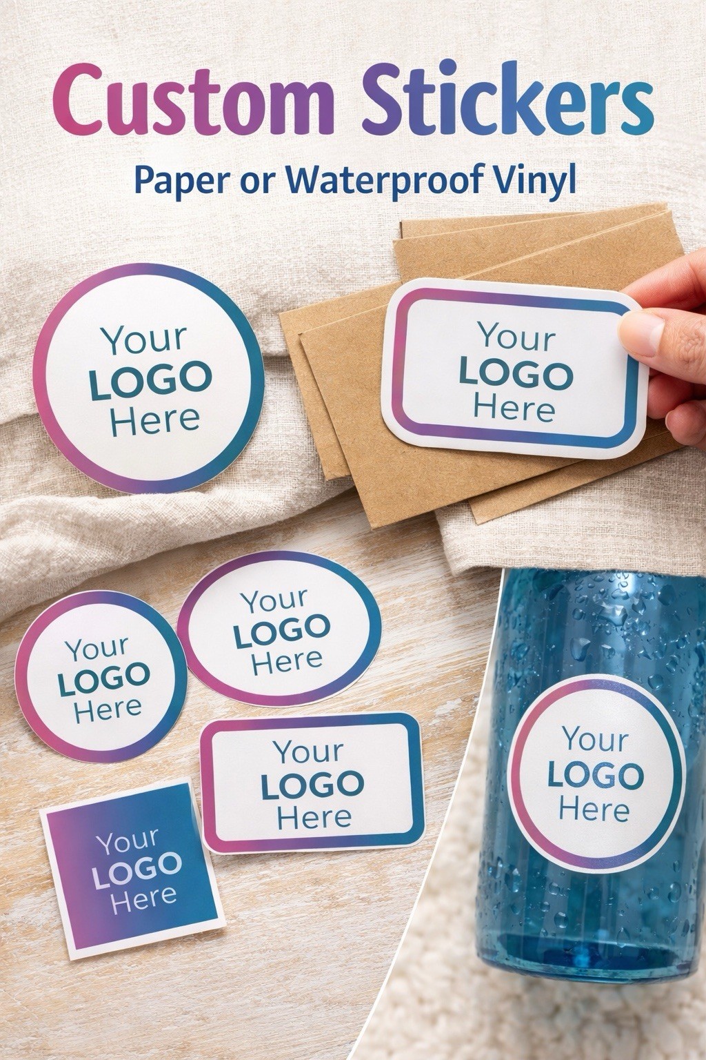 100 Custom Business Stickers – Personalized Logo Labels, Waterproof Vinyl