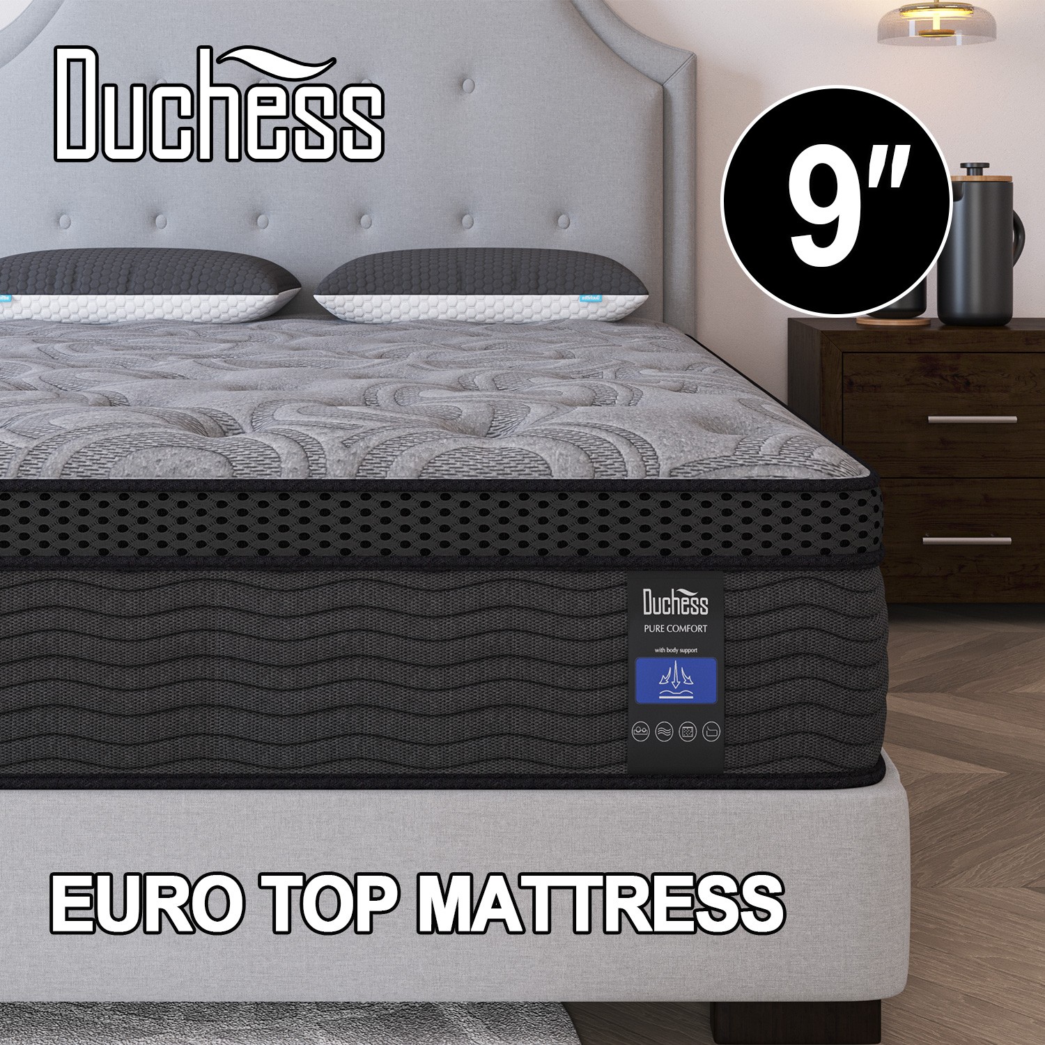 Perfect balance of support & comfort-Duchess mattress constructed with individually wrapped innerspring and Gel memory foam. Individual pocket Spring offers all-over and average support. The high density foam layer make you feel comfort, The gel memory Foam layer for slowly adjusts to body weight & temperature, it provides a buffer so you never feel the coils for optimal comfort, giving you better quality sleep on this mattress. Comfort for your whole body - Consist of 7 substantial core layers, which contains high density foam, will provide you a soft support. Besides, the foam mattress is divided into 5 zones, according to the body curve to fit your body pressure points. .