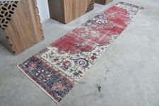 Vintage Turkish Runner Rug 2x9ft RED Handmade Anatolian Oushak Hallway Wool