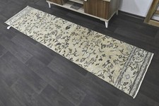 Vintage Turkish Runner Rug 2x9ft BEIGE Handmade Anatolian Oushak Hallway Wool