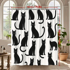 Black Cat Shower Curtain - Cute Cat Design for Bathroom | ✔ Check At Store | $19.99 |