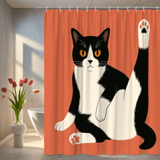 Cute Cat Shower Curtain Funny Animal Black Shower Curtain for Bathroom Decor Set | ✔ Check At Store | $17.01 |