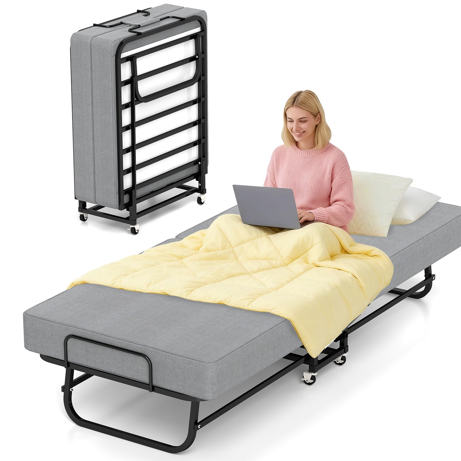 A white non-slip pad underneath prevents the mattress from sliding. The cover is removable and washable. It also makes it easy to provide a comfortable sleeping solution for your guests or for a nap in the office.
