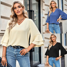 Lotus Sleeve Top Women's Popular Spring and Summer New Solid Color Loose V-neck | ✔ Check At Store | $37.88 |