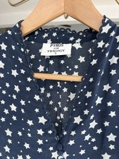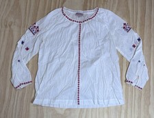 Cotton white blouse in blue pattern. Fastened in front of buttons. On the shoulders Path with a button. Daily outside wear, skirts, pants, jackets very good match. More than 1000 fashion of clothes in our factory.