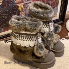 Faux Fur Women Winter Snow Luxury Fluffy Fuzzy Warm Cozy Waterproof Platform ...