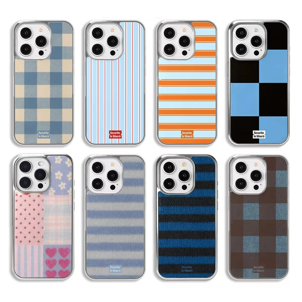 Patchwork Stripes Grid Pattern Electroplated Drip Glue Phone Case For iPhone 17 Air 16 Pro Max 15 14 Plus 13 12 11 Back Cover