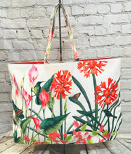 LARGE FABRIC TOTE BAG WITH FLORAL DESIGN.