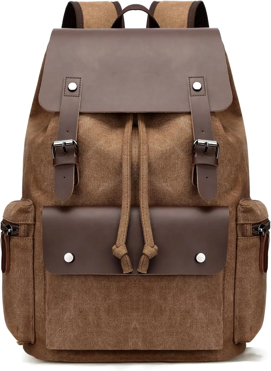 Retro Canvas & Leather Laptop Backpack, Unisex 16 Inch Computer Bag for Work Travel & University, Vintage Style Rucksack