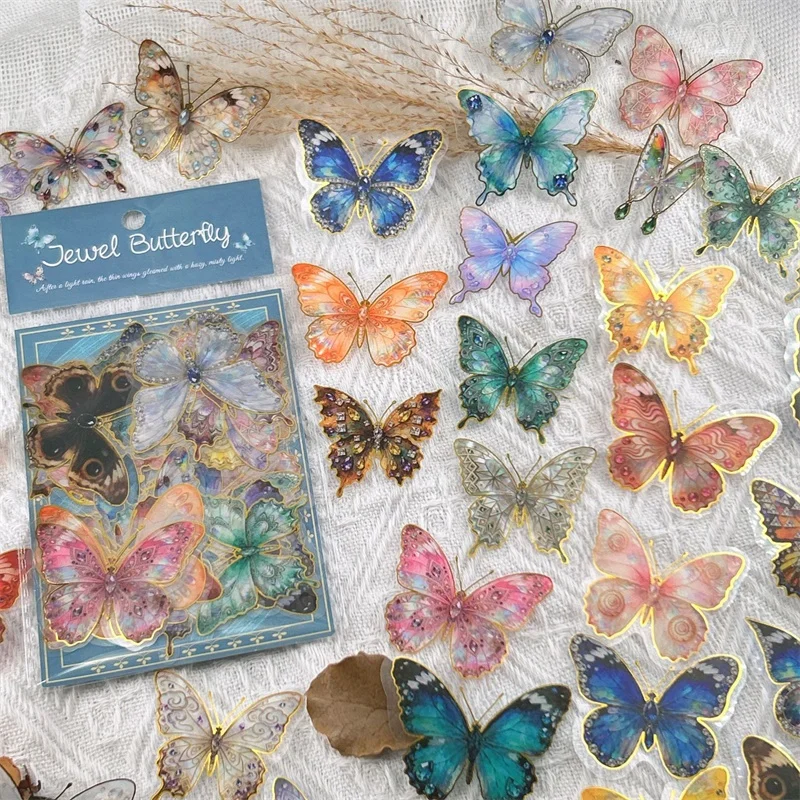 50PCS Gilding Colored Butterfly PET Phone Sticker Aesthetic Transparent DIY Laptop Luggage Skateboard Graffiti Decals