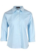 Blue blouse made of natural cotton. One-piece sleeve (batwing) with a turn-up cuff. Stand-up collar. Button closure. Blouse length 64cm. 67cm | 26". More than 1000 fashion of clothes in our factory.