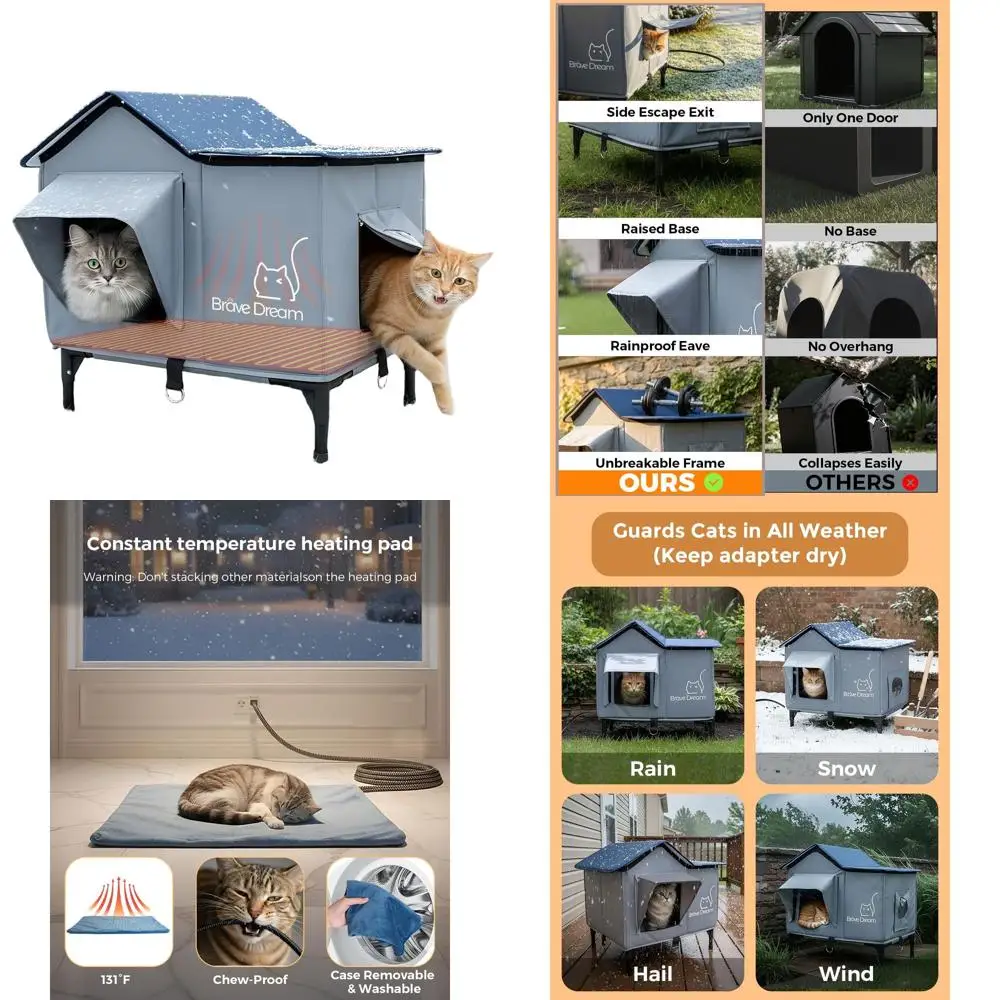 Insulated Outdoor Heated Cat Shelter with Escape Door for Feral Cats, Weatherproof and Foldable for Winter Use
