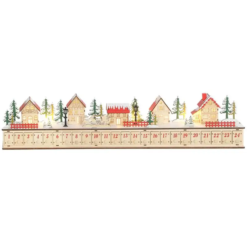 Wood Effect Advent Calendar with 24 Countdown Drawers & LED Lights, Battery Operated Holiday Countdown Decoration