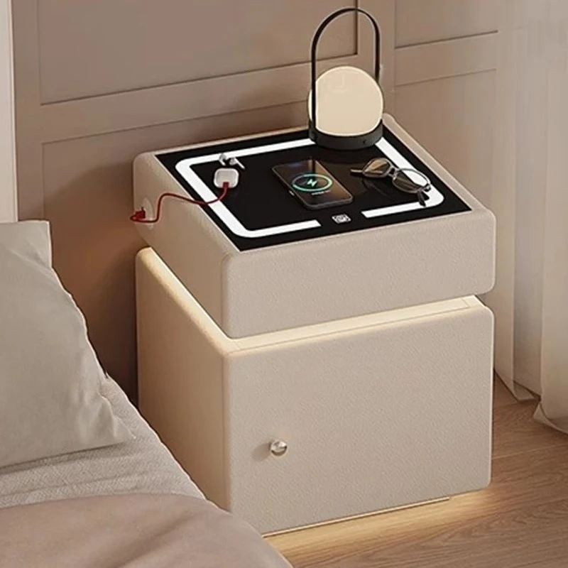 Nightstand Fingerprint Lock Bluetooth Speaker Bedside Table Luxury Storage