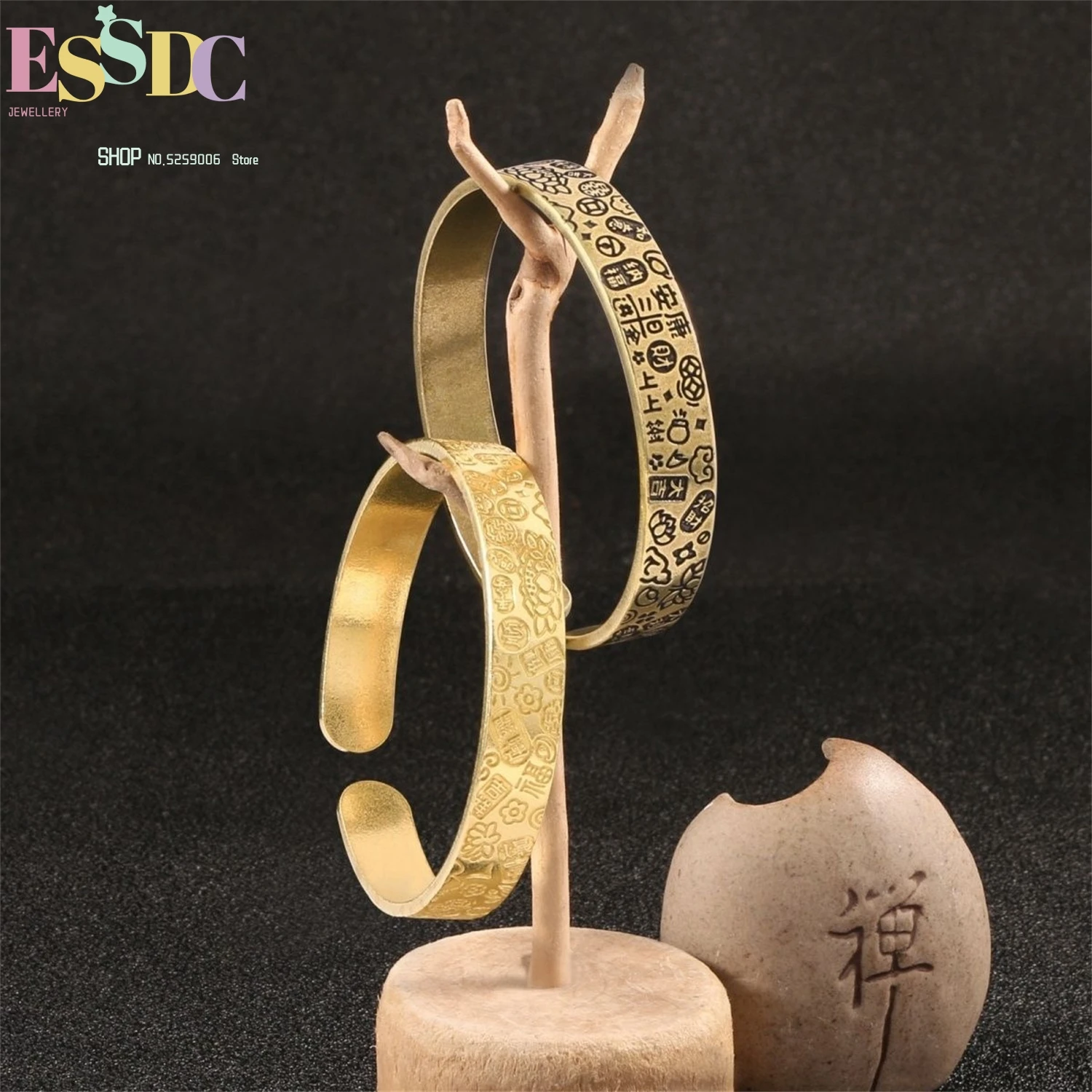 Health Fortune Square Brass Bangle Vintage Antique Chinese Blessing Jewelry Craft Gift For Women Wholesale Boho