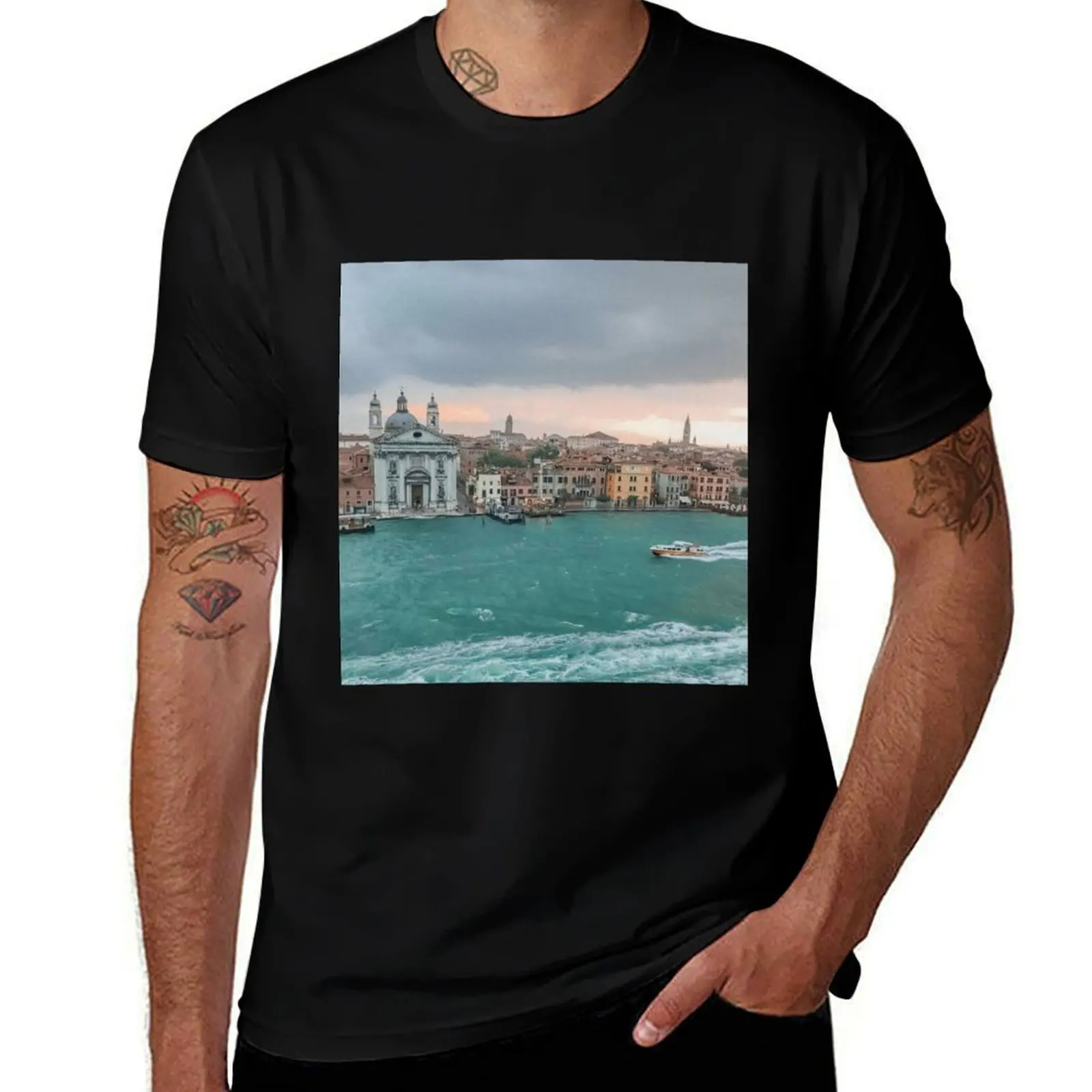 T-Shirt 100% Cotton Regular Fit Crew Neck Short Sleeve Vibrant Cruise Ship and Palm Tree Design Tropical Vacation Theme White with Yellow Lettering Casual Vacation Outfit and Cruise Party Wear Is an Ideal Men's Holiday Gift