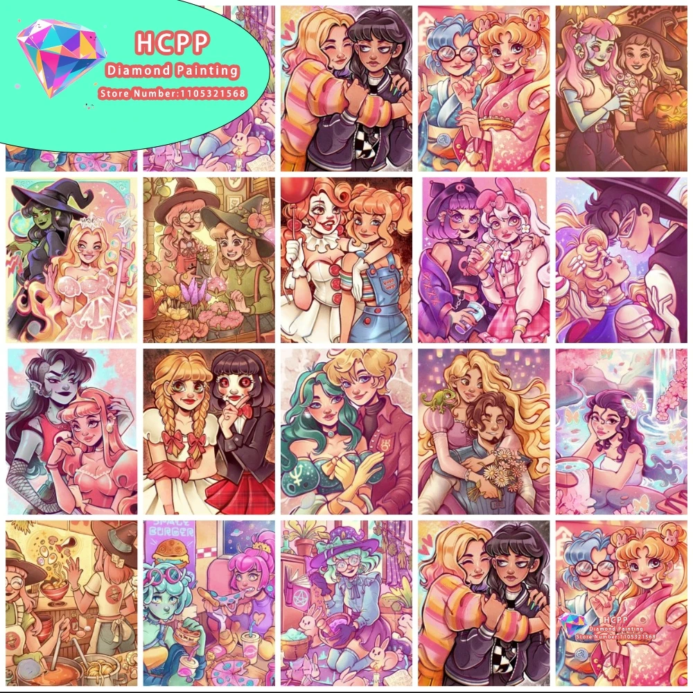 Witch Sister Couple Diamond Painting Kit Square Round Diamond 5D DIY Mosaic Handmade Art Unique Exquisite Gift Crafts Home Decor