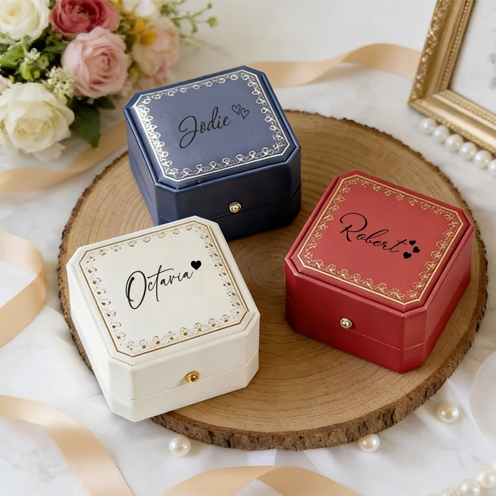 Personalized Engravable Octagon Velvet Ring Box,2-Slot Custom Message,Luxury Proposal Wedding Ring Holder,Bridal,Jewelry Display