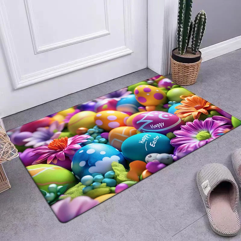 VIKAMA Easter Rug Cute Bunny Floral Design Non-Slip Floor Mat Living Room Entryway Warm Home Decor Instagram Style